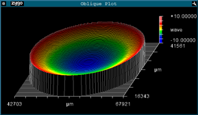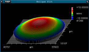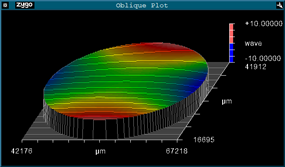 Surface figure encompasses the specification of the geometry of the two optical surfaces of filters with respect to each other and the resultant physical effect on the transmitted or reflected light. Flatness is a subset of surface figure specifying the geometry of a single surface. Flatness is often employed as a default catch-all parameter, used when there is uncertainty of the wavefront control requirements of a filter but the specifier knows (or at least believes) that it is necessary to specify something to avoid getting a highly curved optic that might distort the light path. The flatness of a surface is the maximum deviation from a perfectly flat surface of the same lateral dimensions specified in nm of deviation or sometimes as a “λ/XX @ YY nm” value ratio of the nominal wavelength used to characterize surface figure (typically 633nm). As such, this specification is influenced exclusively by geometric surface deviations of the filter. This spec only defines a single surface therefore flatness should be specified for both optical surfaces of the filter in question.