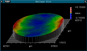 Here is the same substrate after a uniform coating on Side A. The substrate is now curved due to the stress induced by the coating but the TWD remains relatively unaffected: